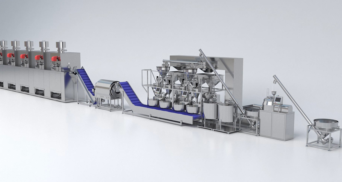 We offer customized and integrated solutions, including Automatic Nut Coating Machines, Rotary Drum Roaster for coated nuts, Continuous fryer for all kind of nuts, fresh potato chip production lines, Flavoring System, Fortune cookies machine and etc.